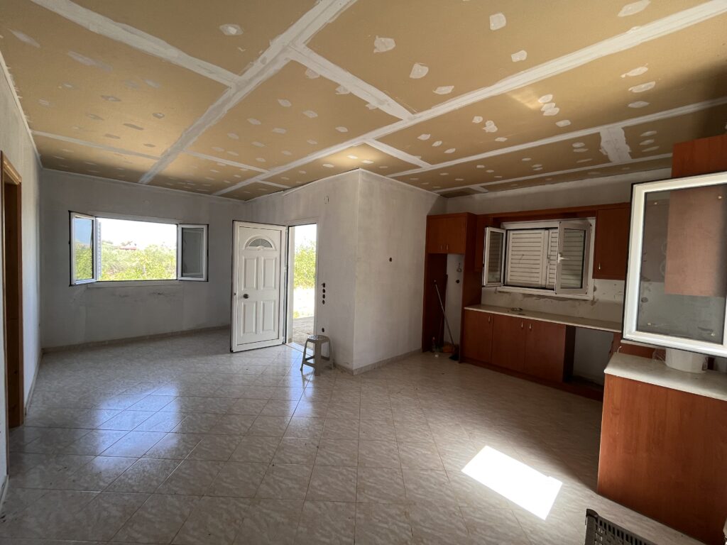 It is a single-storey house of 75 square meters in the settlement of Alexandrou Chani, Municipality of Mylopotamos, Rethymnon. The detached house is located on a plot of 500 square meters. It has two bedrooms, a single space including a living room, kitchen and a toilet. The residence is in the final stage of work both inside and outside the house. The plot has enough space for the formation of a possible pool garden and for a garage. The detached house is located in a quiet area and offers privacy. The settlement of Alexandros Hani is located next to other traditional villages with high tourist traffic. Suggest a holiday home for family housing or even a tourist investment.