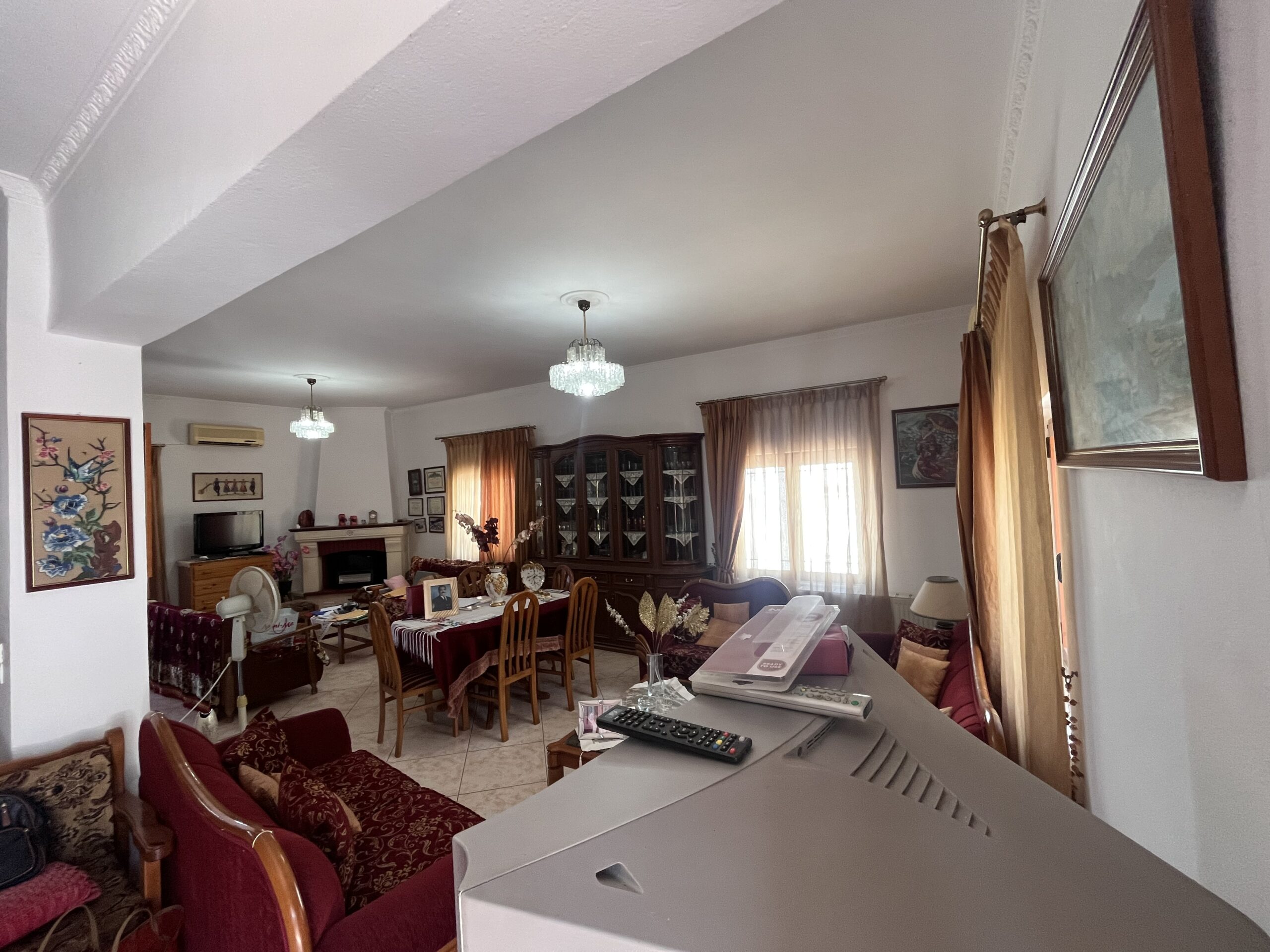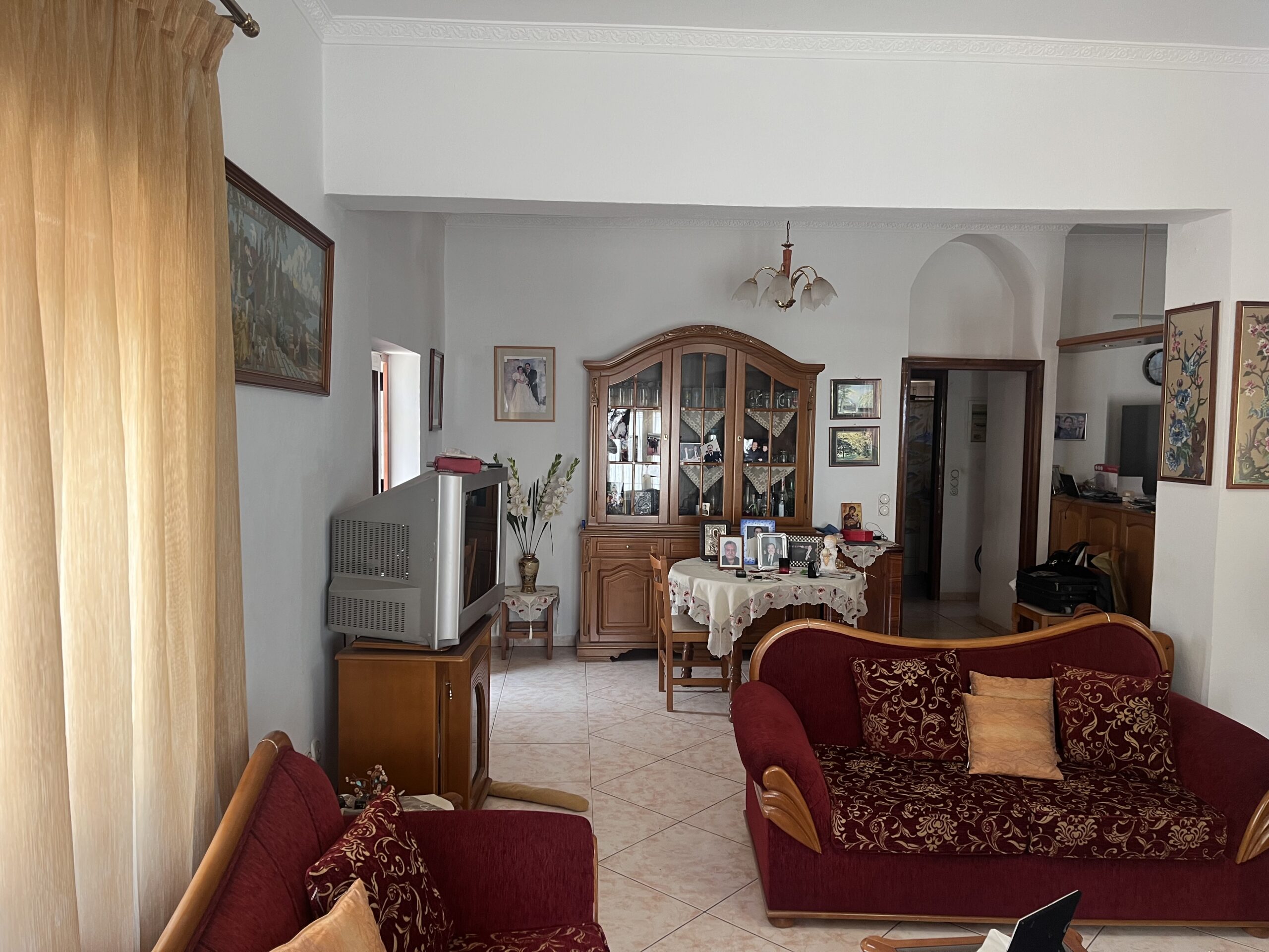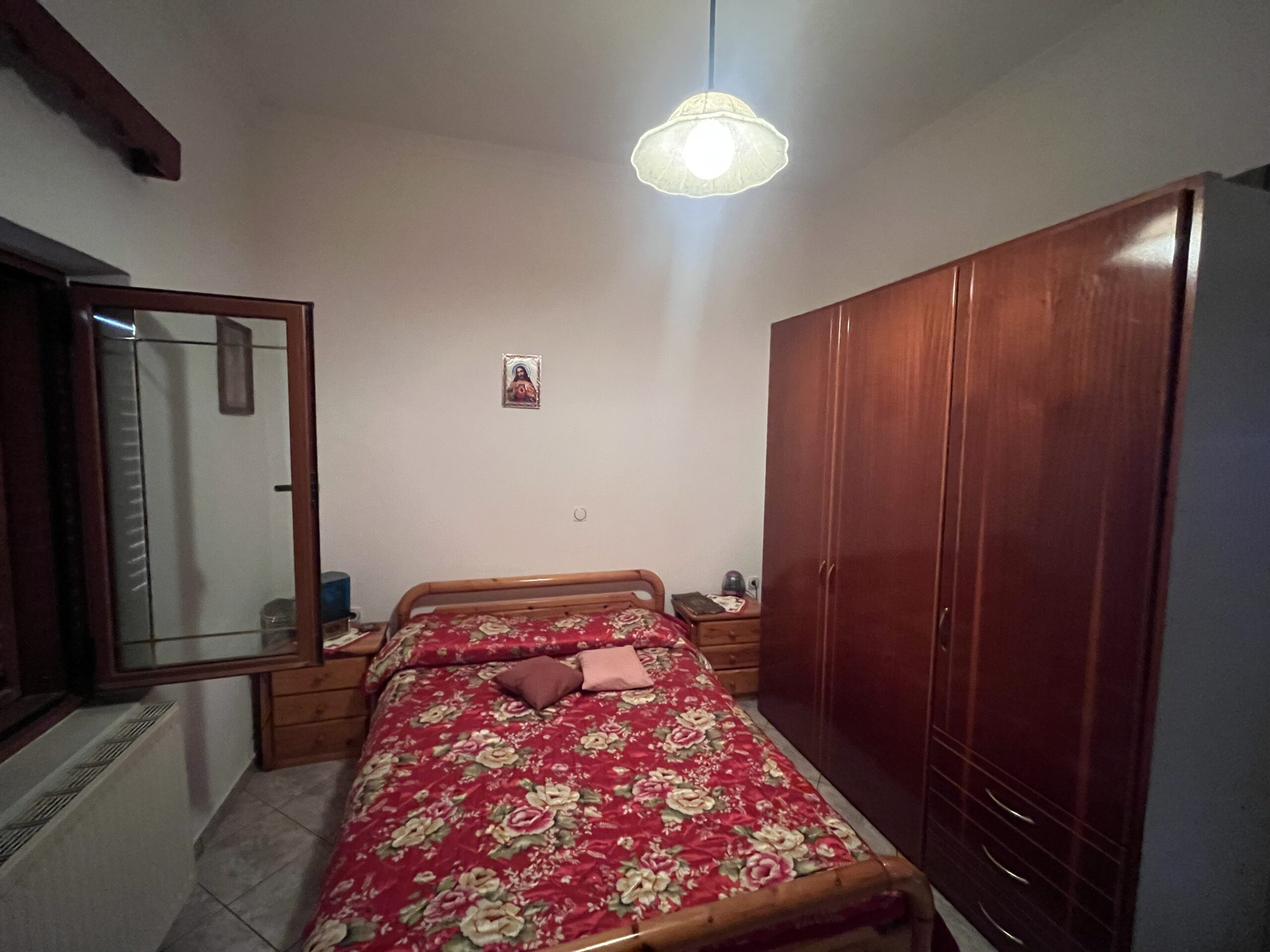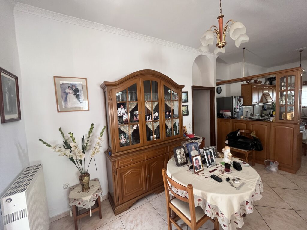 The ground floor is in excellent condition. It consists of 2 bedrooms with a single space kitchen and living room, a toilet and with large balconies front and back. (transparent). The detached house is located in the central part of Agia and has an endless view from the west. There is a balance of construction with a perspective of touristic investment.